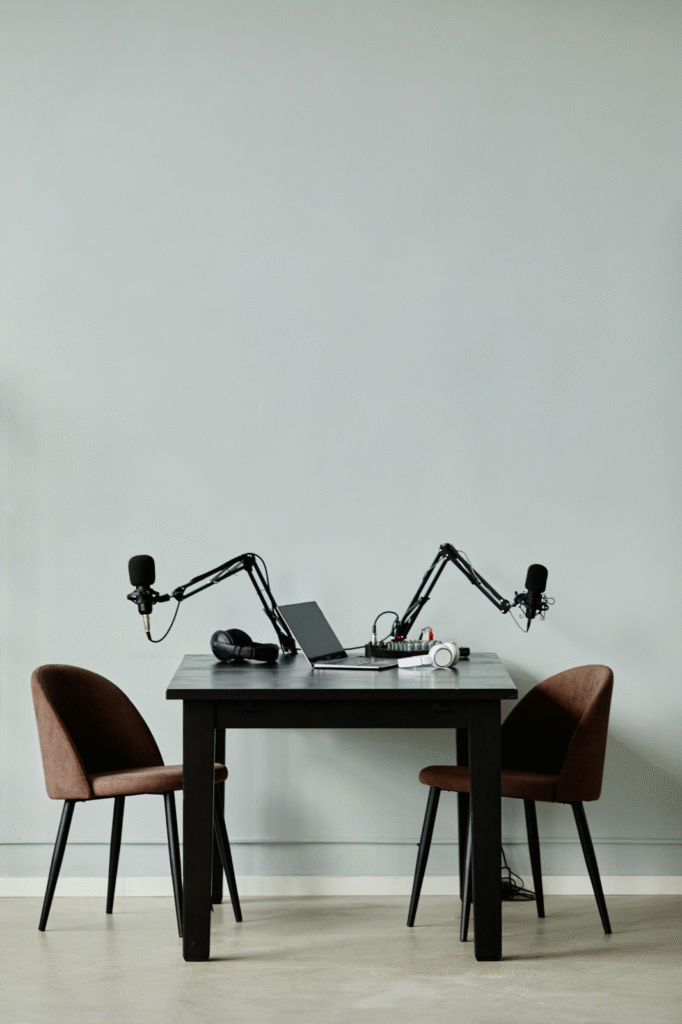 Our space features professional microphones, cameras, mixers, and acoustic treatment to ensure clear, distraction-free audio and crisp visuals. You can easily record interviews, solo episodes, panel discussions, or branded content without worrying about background noise or setup hassles.